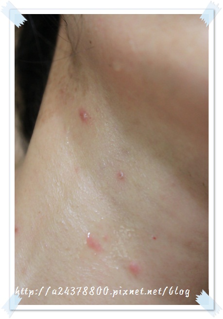 下顎長出了一顆顆的小粉刺,更討厭的是脖子冒出了幾顆很明顯的小痘痘![]()